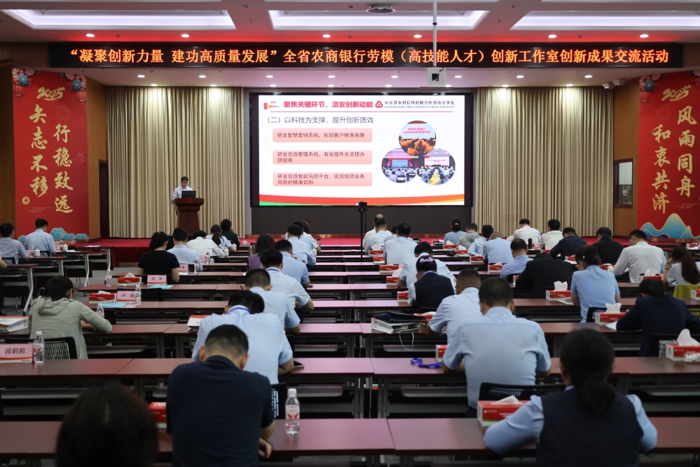 为进一步弘扬劳模精神、劳动精神、工匠精神,搭建创新成果共享、经验互鉴的平台,9月19日,“凝聚创新力量 建功高质量发展”全省农商银行劳模(高技能人才)创新工作室创新成果交流活动成功举办。全省农商银行劳模(高技能人才)创新工作室带头人及骨干成员,各派出机构、潍坊市联社,济南、莱芜农商银行工会负责人等100余人参加活动。省联社党委副书记、工会主席安吉智出席活动,省财贸金融工会副主席张学超现场指导。